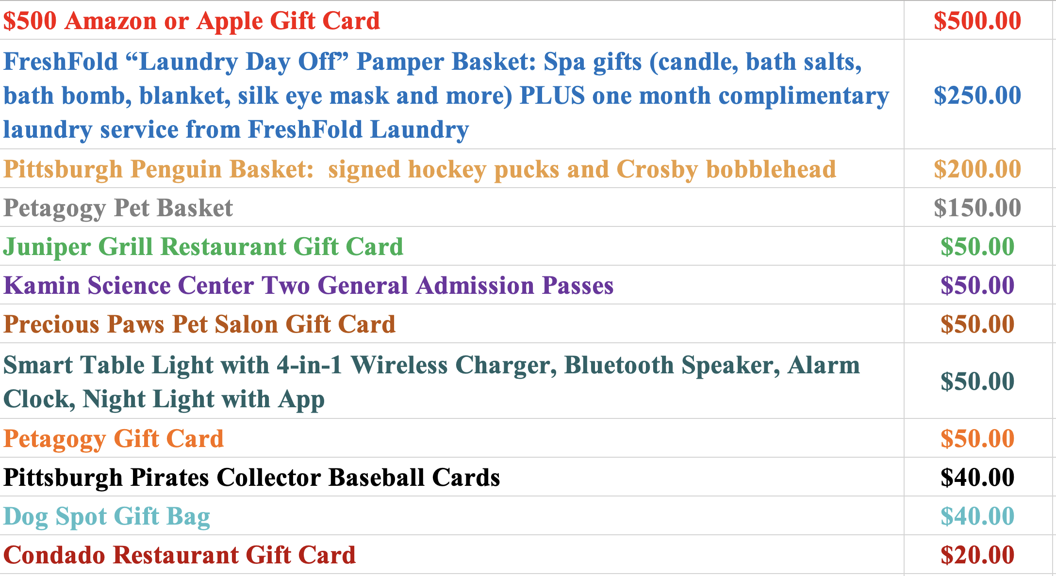 We appreciate your generosity!