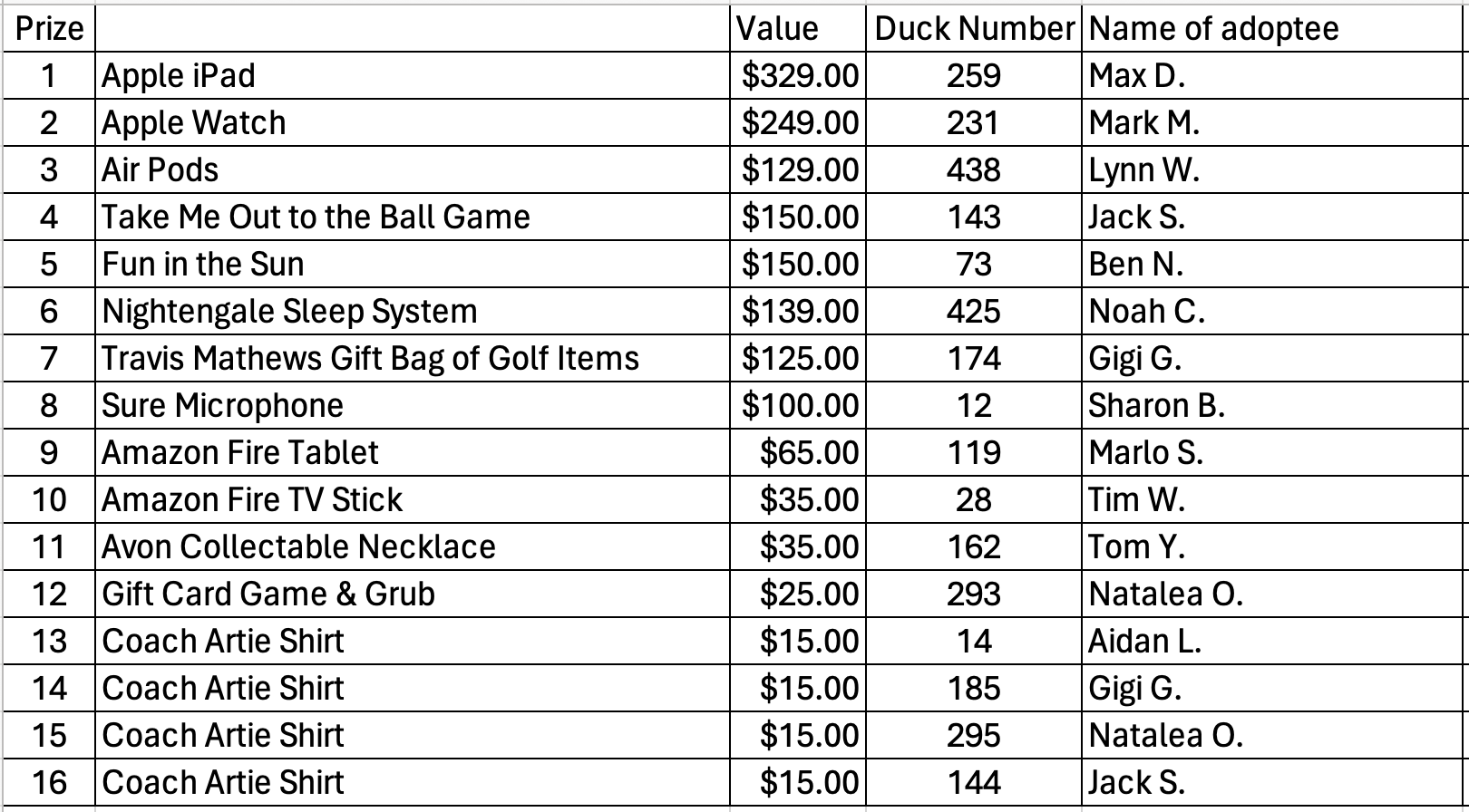 2024 Duck Prize and Winners